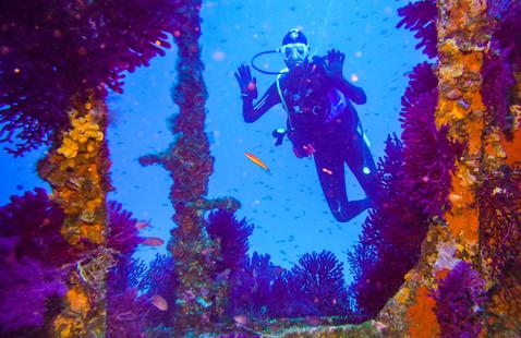Avant même d’atteindre l’épave, les plongeurs sont accueillis par le mât du bateau, toujours debout et culminant à 25 mètres de profondeur. Sur le pont se dressent encore canons et mitrailleuses, aujourd’hui recouverts - comme une grande partie du bateau - par des anémones bijoux. Les plongeurs les plus confirmés peuvent pénétrer dans l’épave, quand la visibilité le permet. La faune est très dense : sars tambours, congres, anthias, maquereaux et sardines, entre autres, accompagnent les plongeurs dans leur exploration.