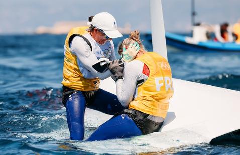 Plutôt que de prendre sa retraite sportive, Charline choisit de changer de discipline. Elle se lance alors dans le 49er FX, un dériveur ultra performant, en duo avec une spécialiste de la série, Sarah Steyaert. Le défi est pharaonique puisque l’objectif des deux « mamas » est d’aller décrocher une nouvelle médaille, à domicile, en 2024. Charline repart à zéro et, sans jamais être montée sur un dériveur, doit apprendre à dompter ce bateau ultra complexe, mais aussi à naviguer en double. Nouvelle embarcation, travail d’équipe et concurrence féroce... la mission semble impossible ? « Quand on goute à l’émotion d’une médaille olympique, c’est tellement puissant et addictif que je ne me suis pas posé la question ». Le duo s’accroche avec détermination et en moins de 3 ans, décroche un premier podium international. Le 02 aout 2024, Charline et Sarah se jettent à l’eau en hurlant leur joie dans la rade de Marseille, elles sont médaillées de bronze ! « L’émotion était la même que pour l’or à Rio. Peu de monde croyait en nous et on a réussi notre pari. J'adore ce qui est dingue, et là c’était incroyable ! » avoue alors la championne. Un bonheur en appelant un autre, leurs compagnons les demandent en mariage quelques minutes plus tard.