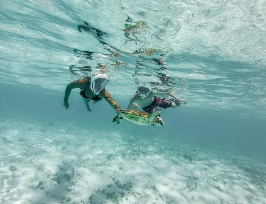 L’eau y est claire, la pente douce, et les fonds regorgent de coraux, de gorgones et de poissons tropicaux. Mais ce qui rend le site célèbre, c’est la présence régulière de tortues vertes, peu farouches, que l’on croise dès les premiers mètres. Le site est aussi réputé pour ses couchers de soleil sur la baie, que beaucoup de plongeurs prolongent un verre à la main, sur la plage, après la remontée.
