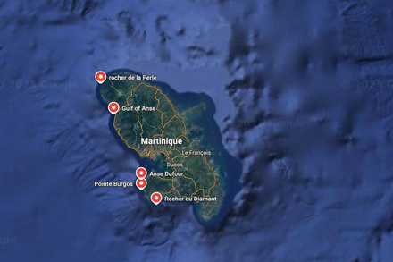 Au nord de l’île, la baie de Saint-Pierre abrite un véritable musée sous-marin. Parmi les nombreuses épaves coulées lors de l’éruption de la Montagne Pelée en 1902, celle du Roraima est la plus impressionnante.