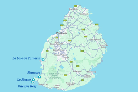 Prenons maintenant un bateau en direction de l’ouest, au large du Morne pour accéder à un spot bien connu faisant également partie des spots préférés de Brian Furcy : Manawa. Le courant peut y être puissant notamment avec un vent venant du sud-est. Il sera possible d’y trouver des vagues dignes des compétiteurs de haut niveau. Les vagues s’y forment sur un récif corallien qu’on appelle plus communément "reefbreak". Selon ses conseils, n’hésitez pas à vérifier que le vent ne dépasse pas 9 ou 10 nœuds pour surfer. Pour votre sécurité, il est toujours important de vérifier les conditions météorologiques avant de vous y rendre. Et s’il y a trop de vent à Manawa, c’est le moment de lâcher sa planche pour le kitesurf, sport nautique réputé à Manawa, et plus largement à l'île Maurice.