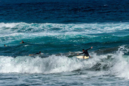 À Gran Canaria, les conditions se densifient et gagnent en intensité. Les surfeurs expérimentés recherchent Santa Catalina ou El Frontón pour leurs vagues abruptes, capables de lever des murs d’eau impressionnants. Pozo Izquierdo, véritable référence mondiale du windsurf, accueille régulièrement des compétitions internationales. Le spot est réputé pour son vent fort, sa mer formée et ses accélérations brutales qui exigent précision et engagement. L’île rassemble ainsi une communauté de sportifs attirés par le défi et la performance.