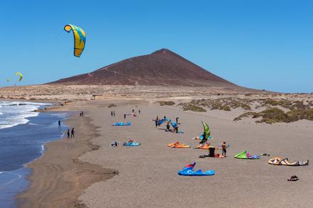 Tenerife propose une transition plus douce et très équilibrée entre différents sports. Autour de Las Americas, les écoles de surf encadrent les premières sessions dans un environnement chaleureux, où les vagues restent accessibles. À El Médano, la plage s’ouvre largement au vent, créant un couloir de glisse où kitesurfers et windsurfers enchaînent manœuvres et longues bords sous le regard du Teide. Pour varier, certaines baies de la côte nord offrent des itinéraires en stand up paddle permettant de longer falaises rouges et arches façonnées par les éruptions anciennes.