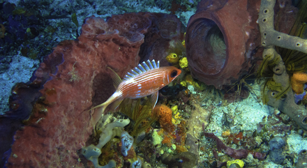 Sous l'eau, la géologie du site offre de multiples plongées dans une vingtaine de mètres, donc accessibles aux débutants, alternant tombants, platier, arche et faille sous-marines ; les parois du rocher plongeant bien plus en profondeur par ailleurs, jusqu'à 40 m, voire 60 m selon la face abordée. Partout, éponges, gorgones, anémones, coraux durs colonisent la roche ; dans ce décor les petits poissons tropicaux foisonnent, les crustacés investissent les crevasses, et les prédateurs rodent. Régulièrement aussi, les tortues émerveillent les plongeurs.