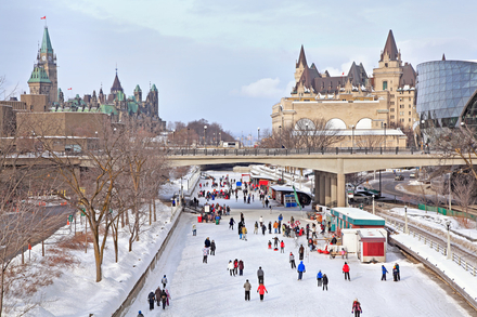À Ottawa, le canal Rideau devient chaque hiver l’un des axes les plus animés de la capitale canadienne. Transformé en une patinoire naturelle de plusieurs kilomètres, il permet de traverser la ville en patins, entre quartiers résidentiels, parcs urbains et institutions fédérales. Classé au patrimoine mondial de l’UNESCO, le canal offre un cadre unique où le patinage se mêle à l’histoire et à la vie quotidienne. L’expérience est autant sportive que culturelle, avec une ambiance typiquement nord-américaine où l’hiver fait pleinement partie du paysage urbain.
