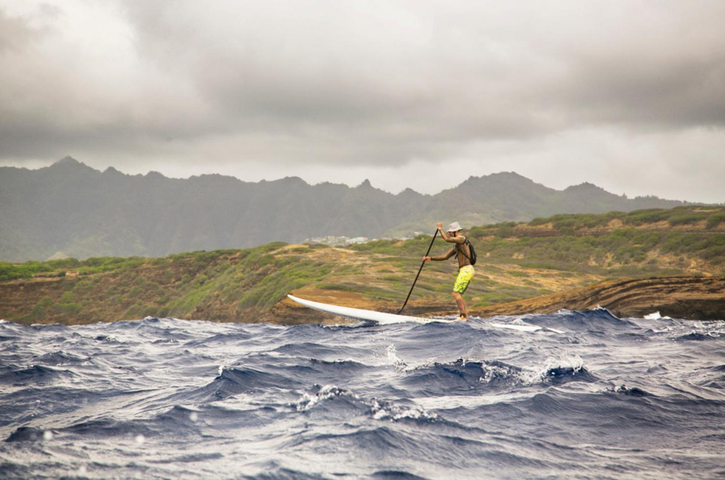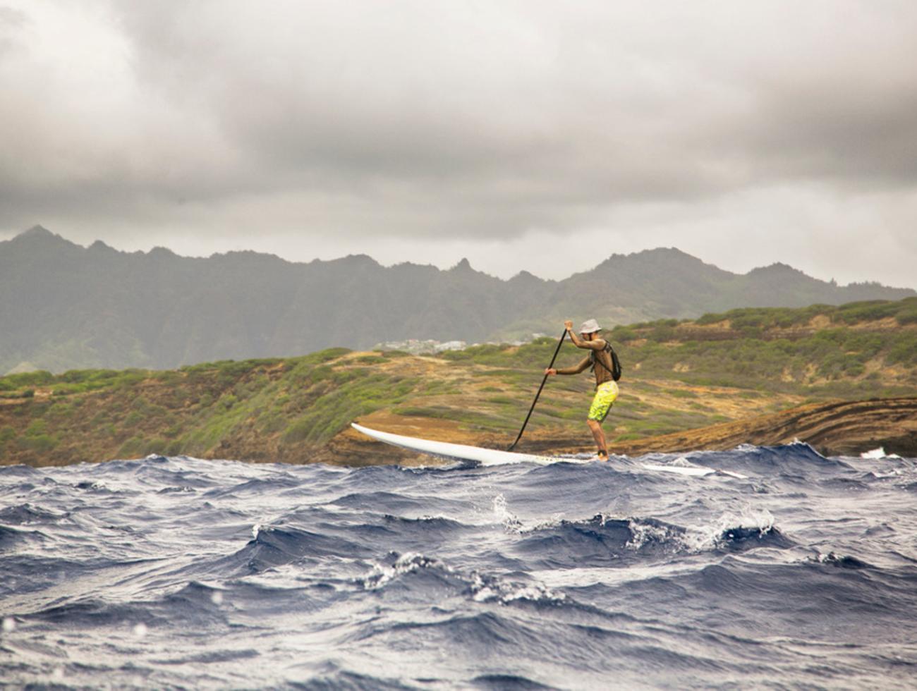 Le matériel influence fortement le comportement en mer agitée. Une planche large, avec un volume généreux, offre davantage de stabilité qu’un modèle étroit destiné à la performance sur eau plate. Un rocker légèrement relevé à l’avant facilite le passage dans le clapot en évitant que la planche n’enfourne. Les rails plus marqués peuvent également aider à maintenir le cap. La longueur de pagaie peut être ajustée légèrement plus courte qu’en eau plate afin de gagner en maniabilité et en réactivité. Quant au leash, il reste indispensable : en cas de chute, le vent peut rapidement éloigner la planche.