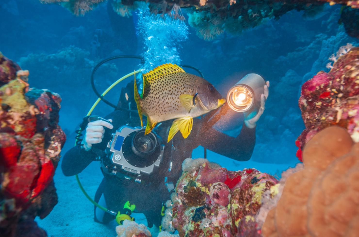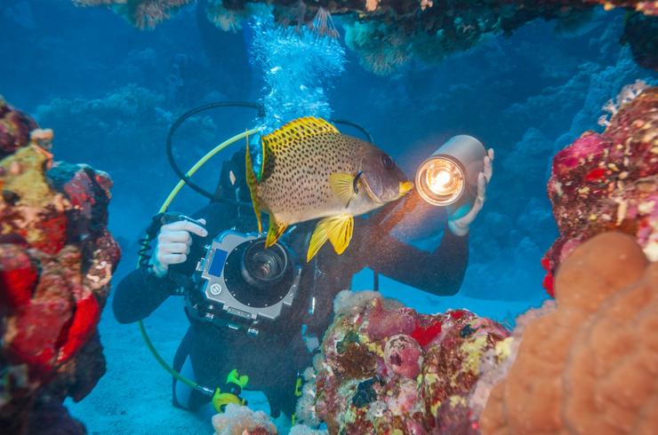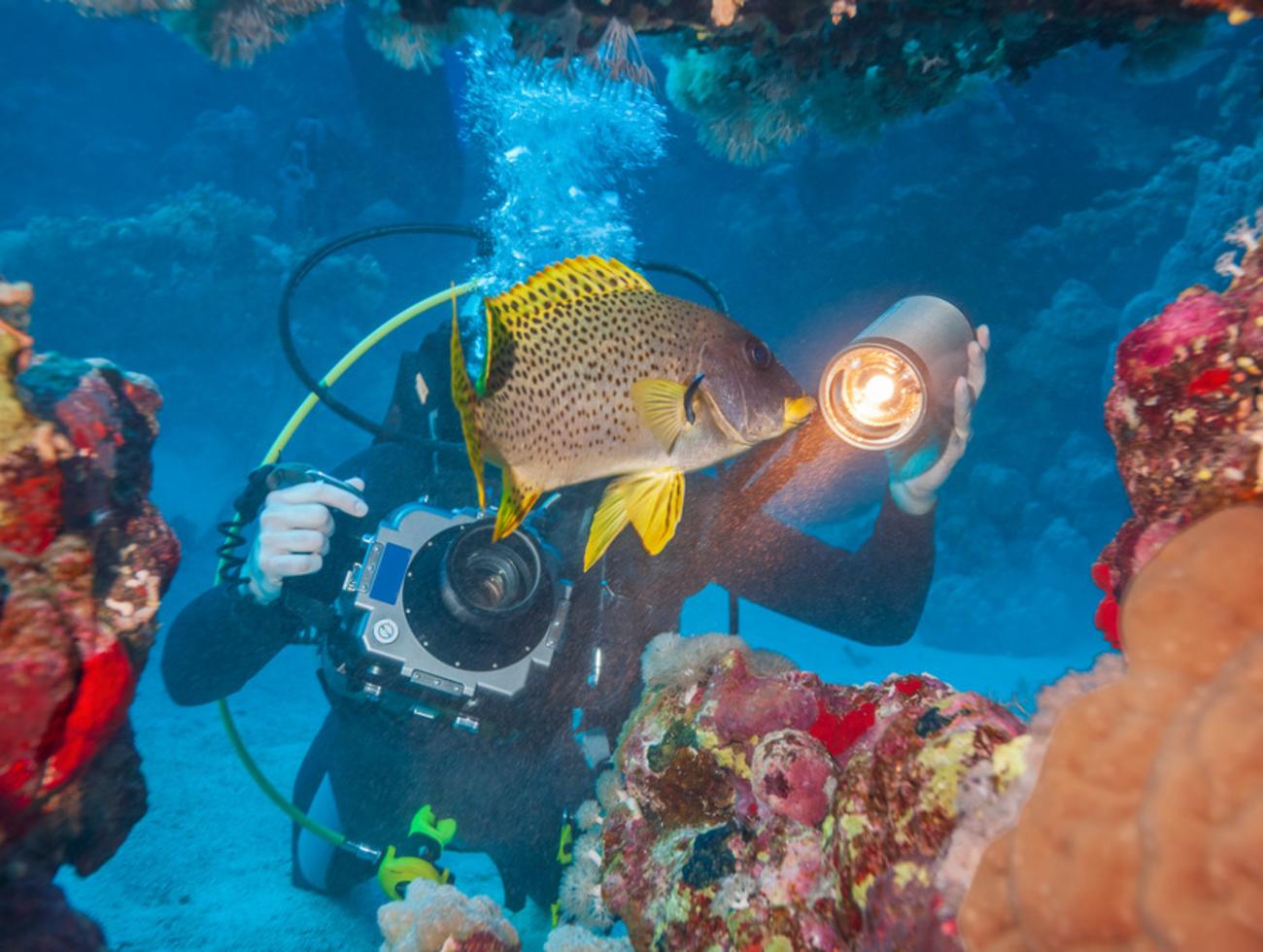 Vient ensuite la question de la lumière. Pour beaucoup de scènes, surtout dès que l’on s’éloigne un peu de la surface, un éclairage artificiel améliore fortement le rendu des couleurs. PADI rappelle qu’en photo sous-marine, la lumière additionnelle change souvent plus les résultats que le changement de boîtier lui-même. Pour commencer, il n’est pas indispensable d’investir tout de suite dans 2 flashs externes, mais une petite lampe vidéo ou un flash simple peut déjà transformer des images ternes en photos beaucoup plus lisibles.