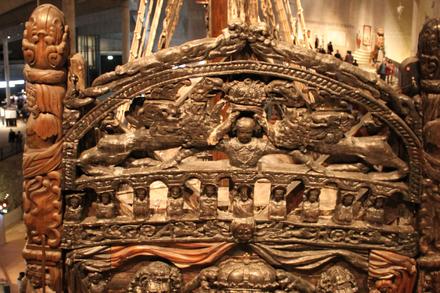 En 1990, après des décennies de conservation et d’études, le Vasa trouve son écrin définitif. Un musée entier lui est consacré, construit sur l’île de Djurgården, au coeur de Stockholm. Le bâtiment a été conçu autour du navire, offrant une vue spectaculaire depuis plusieurs niveaux. On peut l’admirer de face, de flanc, depuis le dessus, ou s’approcher à hauteur des ponts pour contempler les détails des sculptures d’origine.