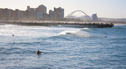 Situé dans la province du KwaZulu-Natal, Durban, bordée par l’Océan Indien, est considérée par beaucoup comme la capitale du surf en Afrique du Sud. On trouve en effet dans la région, de nombreux spots pour tous les niveaux et quasiment toutes les conditions de houle et de vent. Les spots se répartissent sur deux sites principaux, le front de mer et les falaises. C’est du côté des falaises que l’on retrouve la plus forte houle de Sud-Ouest. Les spots du front de mer nécessitent une forte houle d’Est pour bien marcher. Parmi les meilleurs spots du coin, on citera Pigs Hut, Main Cave ou encore Vetch’s Reef, North Beach et New Pier. À noter qu’entre juillet et janvier, la température de l’eau varie entre 20 et 27 °C. Et comme partout sur la côte, il est important de faire attention aux requins qui sont plutôt agressifs dans la région.