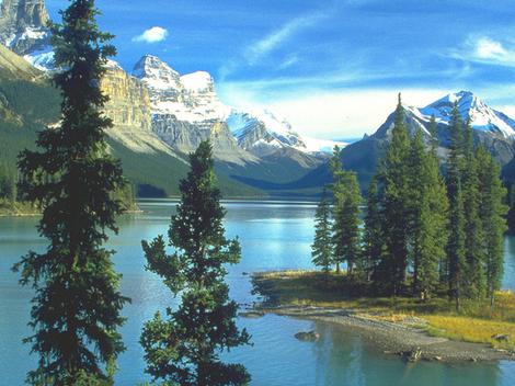 Lac Maligne, Alberta, Canada : situé à 1670 mètres dans le parc national de Jasper, le lac Maligne est l’un des endroits les plus photographiés du monde. Les glaciers avoisinant ses rives lui donnent une eau d’un bleu azur, toujours glaciale, mais remplie d’organismes vivants de toutes sortes, parmi lesquelles les truites arcs-en-ciel, l’un des grands emblèmes naturels des Rocheuses.