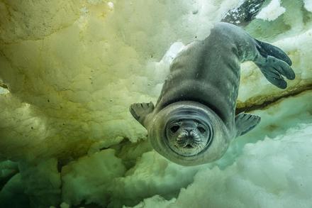 Au fur et à mesure de la descente, Laurent rencontre des phoques, des manchots empereur... Et au fond, un jardin luxuriant : des plantes de toutes les couleurs, des étoiles de mer gigantesques (38 m de diamètre pour certaines), des araignées de mer géantes... On pourrait croire que les espèces, animales et végétales, qui peuplent cet océan sont immortelles. Leur croissance est plus lente que dans les eaux chaudes et tempérées du reste du globe, ce qui explique leurs tailles exceptionnelles.