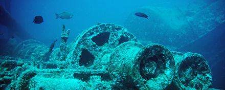 Ces conditions réunies, vous observerez les restes des armes de guerre, avec leurs munitions. Vous verrez du côté de la proue des fusils Lee Enfiel, des mitraillettes Mk III, d’autres accessoires comme des bottes, des produits pharmaceutiques d’époque. En descendant dans les profondeurs, en allant vers la poupe éclatée, vous verrez des torpilles, des ailes d’avion et les rails qui étaient censés servir la compagnie ferroviaire d’Egypte. Vous pourrez pénétrer dans les cales pour observer les divers camions d’époque également ! Vers la poupe, vous verrez les dégâts provoqués par la bombe de l’époque, une béance bombée. Il s’y trouve des bombes, des munitions et surtout les deux canons anti-aériens, miraculés. Aux alentours de l’épave, les ruines des locomotives à vapeur jonchent les fonds marins. Aucun doute, il vous faudra, pour cerner toutes les facettes de cette épave, plusieurs plongées.