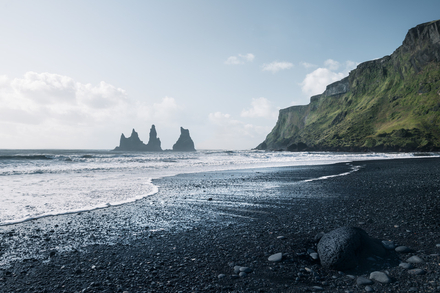 Avec ses falaises basaltiques et ses colonnes rocheuses dressées comme des orgues géantes, Vík est l’un des lieux les plus photographiés d’Islande. Le sable noir volcanique contraste avec la blancheur de l’écume. En septembre, la météo capricieuse ajoute au décor une atmosphère dramatique, parfois soulignée par de brusques éclaircies qui transforment le paysage en tableau vivant.