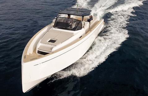 Le poste de pilotage surélevé avec vision panoramique se situe au centre du bateau. Il est abrité sous un binimi rigide, dont le toit peut tenir lieu de rangement pour les accessoires (surf, canne à pêche, etc.). Le pilote a à sa disposition un grand écran de contrôle de 24 pouces (navigation, consommation, autonomie, etc.). La commande moteur se fait par un bouton rotatif (recouvert de liège) situé à tribord. Un propulseur (hydraulique) avant/arrière sert pour les manœuvres de port.