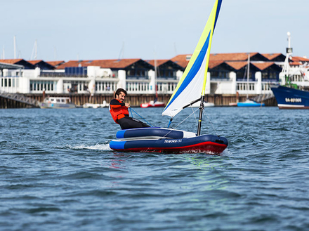 A deux adultes, en solo ou en famille, la marque Tribord va proposer à la rentrée un dériveur gonflable pour que tout le monde puisse goûter aux joies de la navigation. Le 5S sera compact et facile à transporter : il tiendra dans deux sacs seulement. 25 minutes seulement suffiront à le gonfler et à la monter en bord de mer, lac ou rivière. Le 5S sera doté de deux roues tout terrain amovibles et d'une coque plate, permettant de garantir la stabilité du bateau même lorsque le vent se lève. Il pourra naviguer dans des conditions jusqu'à 16 noeuds. La seule chose qu'il vous faudra savoir faire : un noeuds de huit. Une girouette pédagogique accompagne le réglage de la voile. Pour naviguer rien de plus simple : il vous suffira de diriger la barre. Côté confort, le pont est épuré, avec une bôme haute et une large banquette U recouverte de pads en mousse.