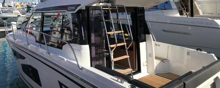 Après la sortie d'un modèle Merry Fisher de 10 mètres en version hors-bord, Jeanneau a continué le développement de sa gamme MF en sortant cet automne une version à flybridge. Déjà unique dans sa catégorie avec une motorisation hors-bord et ses 3 cabines, le Merry Fisher 1095 se voit doté d'un espace en hauteur intégrant un bain de soleil et une banquette copilote rabattable. La banquette peut ainsi se transformer en chaise longue ou en bain de soleil XXL au gré de vos envies. En option, un bimini sur le fly est proposé par Jeanneau. Objectif : la croisière en famille ou entre amis.