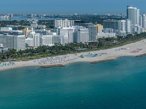 Située dans le comté de Miami-Dade, Miami Beach se trouve sur la pointe sud de l’État de Floride. Bordée par l’océan Atlantique, la ville est parfaite pour exercer divers sports nautiques tels que le surf ou la voile. Ville insulaire, elle est reliée au continent, et à Miami, par des ponts. Ce qui l’a rendu célèbre, c’est notamment sa multitude de paysages. Elle ressemble en tout point à une île déserte mais avec une ville très dynamique en son coeur. Un mélange parfait !