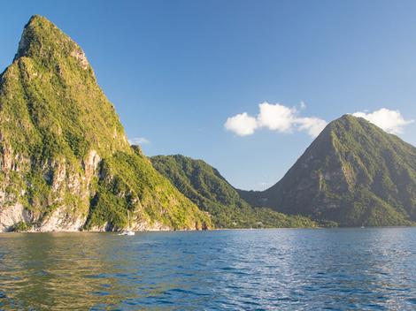 Sa géographie est marquée par le fait qu’elle se situe sur un arc volcanique. Les deux pitons, Gros Piton qui culmine à 786 m, et Petit Piton, au sud de l’île lui donnent une silhouette facilement reconnaissable et très photogénique. Une balade en partant du village de pêcheurs « Soufrière », du nom du volcan, permet de visite le jardin botanique Diamond et de se baigner dans les sources d’eau chaude aux abords des fumeroles de souffre.