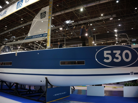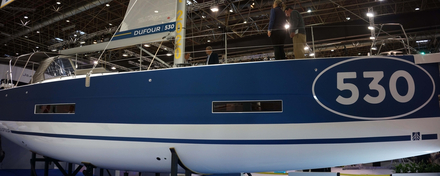Positionné dans le segment des 50 pieds, le Dufour 530 affiche de belles mensurations : 16,30 mètres en longueur hors tout et 4,99 mètres de large, et donc de beaux volumes intérieurs, notamment en ce qui concerne la cabine propriétaire à l'avant, ou cabine double en version charter.