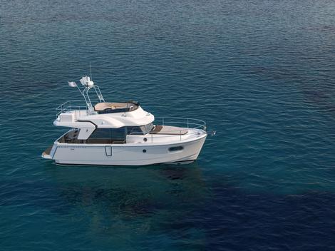 Ce nouveau Merry Fischer, présenté en avant-première au Salon de Cannes et que nous avons pu tester, est avant tout un bateau conçu pour la croisière familiale que son concepteur n’hésite pas à classer dans la gamme weekender.