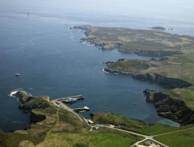 Accès : Le seul danger au milieu de la baie est le rocher Gorle Vihan, marqué par une tourelle de danger isolé. Pour accéder au port, on passe au sud de ce rocher. Pour parer les dangers qui débordent au NW le rocher Men Korn, on peut suivre l’alignement à 277° de l’ancien sémaphore du Stiff par la tourelle de Gorle Vihan, jusqu’à venir en route à 259,5° sur l’alignement du phare de Creac’h par le feu de guidage de l’extrémité de la digue Jarland. De nuit : on fait route dans le secteur blanc de ce feu (254°-264°). Ce port est utilisé par les navires de pêche et les navires de liaison avec le continent. Il comprend une cale, par fonds asséchants, bien protégée à l’angle NW. Le môle ouest dispose d’un quai d’une vingtaine de mètres de long à son extrémité, de 0,8 à 2,1 m d’eau ; il est bordé, côté est, d’une souille draguée offrant 2 à 3 m d’eau et s’étendant entre 10 et 30 m de la moitié sud de l’ouvrage. La digue Jarland, longue de 95 m, est accostable sur sa face intérieure par 3 à 12 m d’eau. Un coffre réservé au service des Phares et Balises est mouillé à 80 m au SSE de l’extr. du môle ouest.