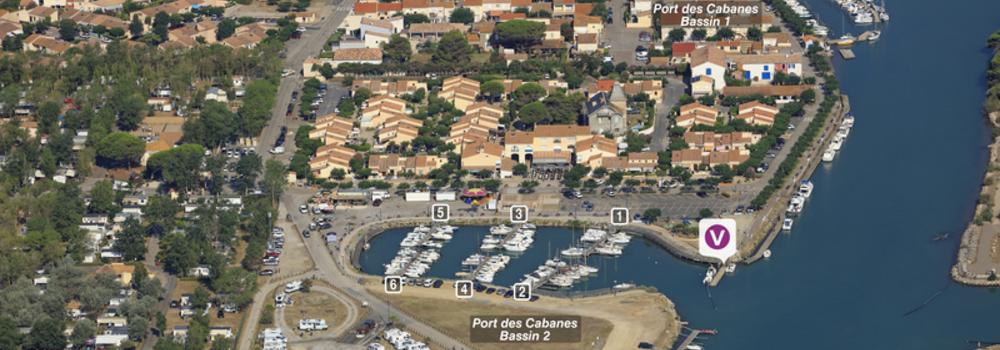 Situé à 1 M en amont de l'embouchure de la rive gauche. Attention : fonds marins très changeants, suivant les crues de l'hiver. Prendre à droite en entrant (2,5 m de profondeur).