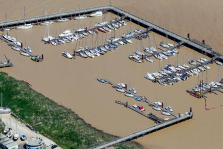 Profondeur : Échouage à marée basse (vase molle) ; Tirant d'eau max. 1,50 m.