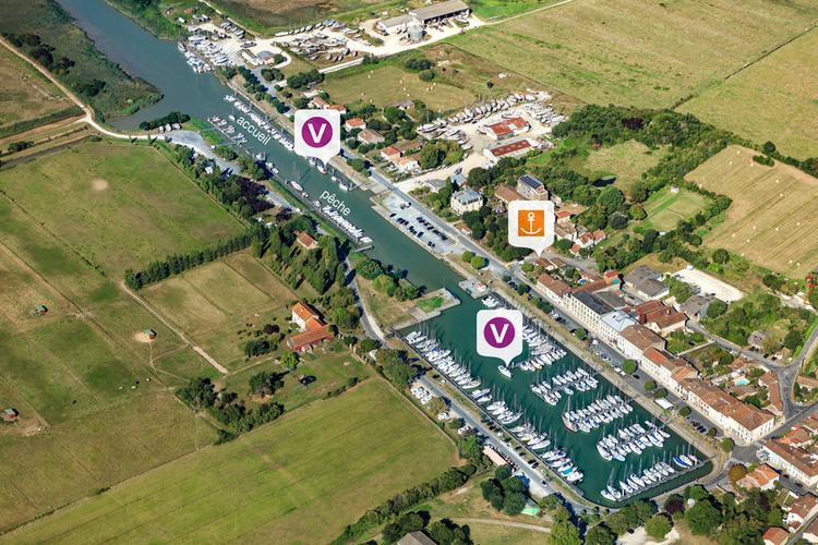Accueil : Ponton flottant situé dans l'avant-port, à bâbord en entrant ; Ponton flottant situé dans le bassin face à l'écluse ; Échouage.