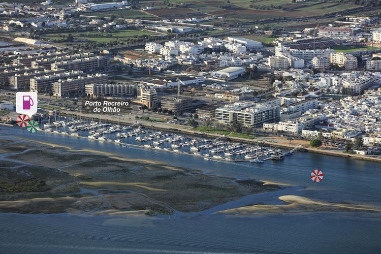 Olhão est un important port de pêche. Un bassin de plaisance se situe dans la partie ouest du port. Cependant, les places visiteurs sont rares. L'intérêt principal de la région est le cap de Santa María : bancs de sable, lagunes et îles qui bordent la côte sur quelque 30 M.