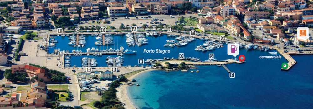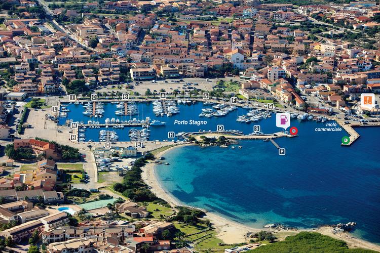 Au S, marina Porto Stagno ; 475 pl. ; Bassin de plaisance bien abrité, 30 visit. (< 18 m).