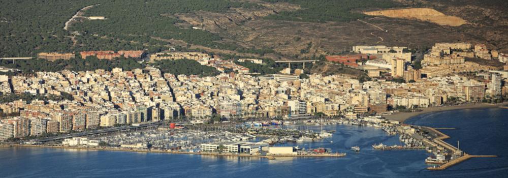 Accès : La côte, relativement basse, se détache peu sur l’arrière-pays montagneux. La côte NW de la baie borde la Albufera de Elche, lagune marécageuse entourée de salines au milieu desquelles se trouve une tour en ruine dénommée Torre del Tamarit (Torre de la Albufera) qui est un amer utile depuis la baie. À l’Est du port, se dresse un immeuble de grande hauteur qui constitue un bon amer. Le port est abrité par deux digues portant chacune un feu. Entre ces digues, la passe est large de 150 m et profonde de 6 m.