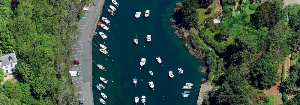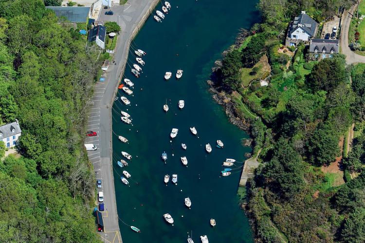 Petit port situé à Moëlan-sur-Mer, protégé des vents du S par une digue.