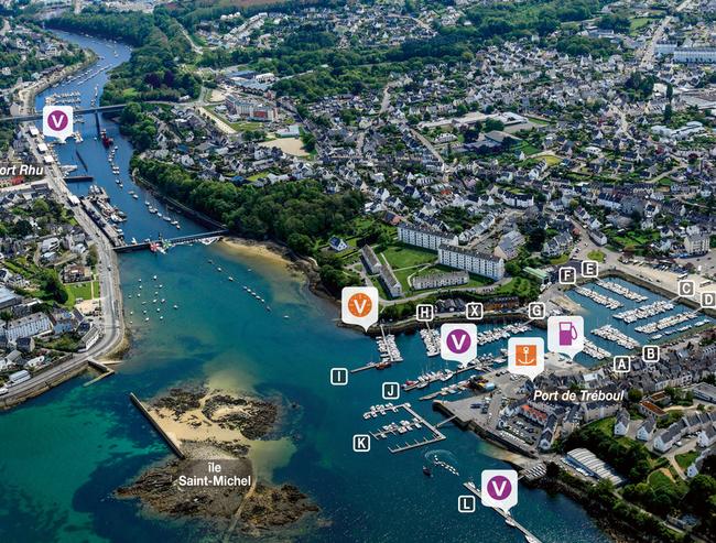 Douarnenez est la ville aux 3 ports, avec le port en eau profonde de Tréboul, le bassin à flot de Port Rhu et le port de pêche de Rosmeur, où le mouillage forain est possible.
