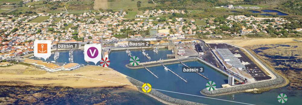 Le port se compose de trois bassins. Les bassins 1 et 2 sont à échouage (+0,50 cote marine). Le bassin 3 mis en service en 2022 est en eau profonde (-2,50 cote marine). 50 places plaisance attribuées à l'échouage sur ponton (bassin 1 uniquement). Les pontons des bassins 2 et 3 ainsi que deux pontons du bassin 1 sont réservés à la pêche (90 places). Places visiteurs ponctuelles sur demande au bureau du port.