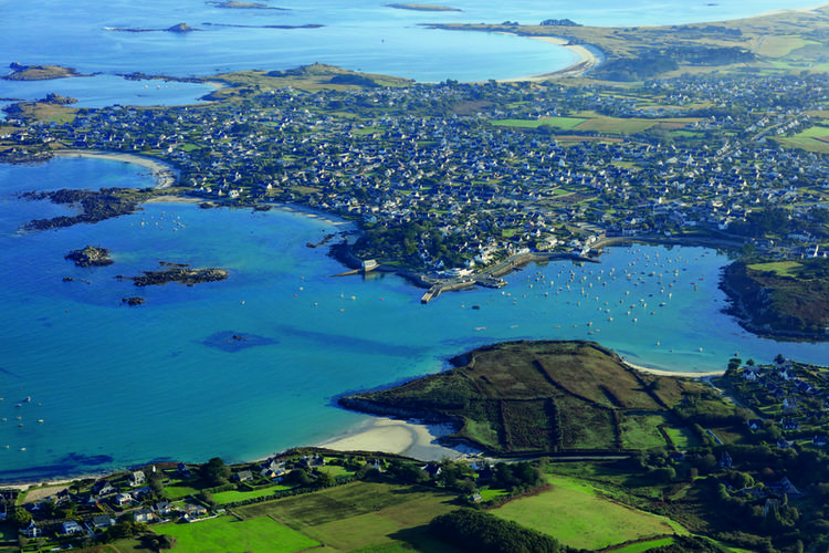 Approche : De jour : Chenal W (Men Glas) clair jusqu'à la balise de Men Ar Pic, éviter le banc Idi ; Faire route sur la balise La Pendante ; Le chenal E (du Relec) est plus difficile. De nuit : Phare de Corn Carhai Fl(3)W.12s19m9M.