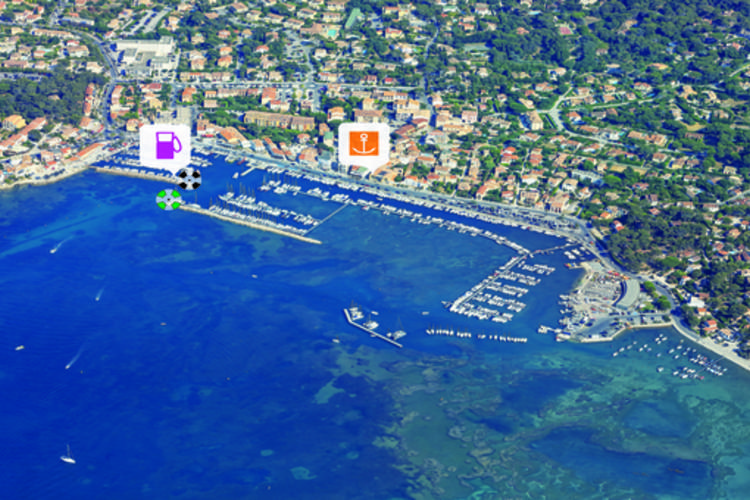 Carburant : Station d'avitaillement SP 98/gazole, carburant détaxé, 7j./7, 24h/24 (zone N, côté gare, accès limité aux TE < 1,5 m, saison 9h-19h, hors saison 8h-12h sauf dim.).