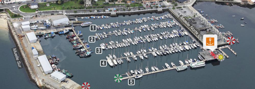 Accès : Entrer dans la ria par le chenal S. Suivre l’alignement entre la bouée de la basse Cabezo de Morrazán (Iso.R.5s5M) et le phare de l’île Tambo Fl(3)W.8s34m11M (42°24’,5 N - 008°42’,5 W), pointe Tenlo Chico. Passer l’île Tambo via le chenal S. Faire route vers le port (42°25’,62 N - 008°42’,14 W). Passer le phare du port de pêche pour att eindre l’entrée du port de plaisance entre le brise-lames et la jetée du port de pêche.