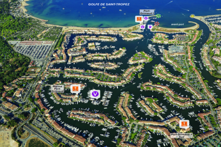 Situé au fond du golfe de Saint-Tropez, Port-Grimaud est désormais géré par une entité unique regroupant les trois anciens ports " Port-Grimaud ", " Marina de Port-Grimaud " et " Port-Grimaud II Sud ". Cet ensemble constitue aujourd’hui une marina de grande envergure organisée autour de bassins intérieurs, directement reliée aux habitations et aux commerces de la cité lacustre.