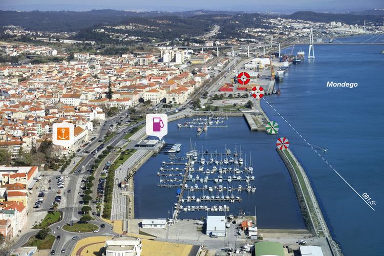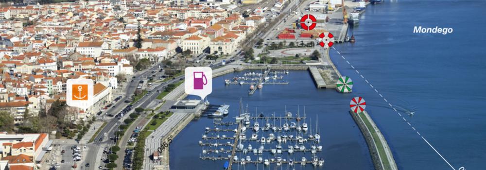 Feux d'entrée : Marina W Fl(2)R.8s5m2M (40°08',8 N - 008°51',6 W) ; Marina E Fl(2)G.8s5m2M (40°08',8 N - 008°51',5 W).