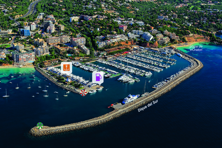 Luxueuse marina située dans la baie de Palma, à l'W des îlots de Las Illetas. Accès au port sans difficulté. Prudence par forts vents de SE à S.