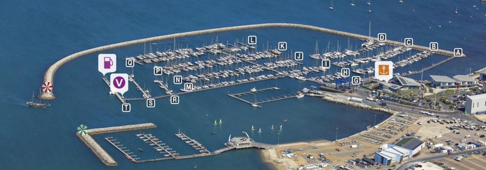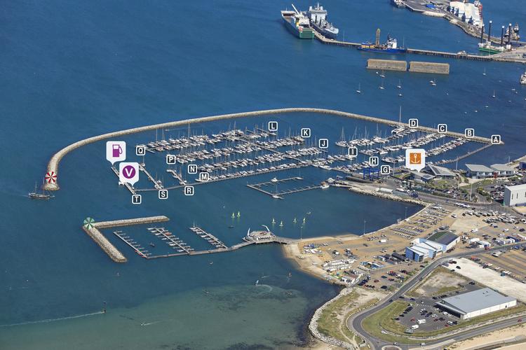Infos pratiques : Réservation possible depuis le site web du port. Prendre contact par téléphone ou par VHF 80 avant de pénétrer dans l'enceinte du port. Tarifs sur demande. Eau et électricité incluses.