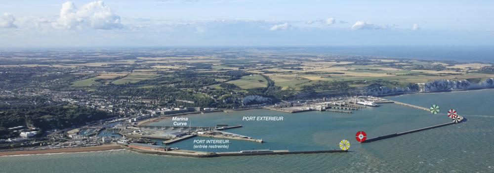 L'approche de Douvres s'effectue sans danger. À certains stades de la marée, surtout à PM, prévoir de grandes variations de courants dans les accès, vitesse max. pouvant atteindre 4 nœuds au S du brise-lames Southern. Port commercial actif situé sur la côte SE du Kent, à environ 1,5 M du SW du South Foreland. La marina est située dans le Wellington Dock, et la partie E de Tidal Harbour (bassin de marée), sur appontements.