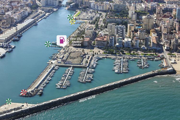 Puerto de Gandia est un port de commerce, de pêche et de plaisance aménagé dans l'embouchure de Río de San Nicolas. Le club nautique est dans la partie Nord du port, à l'enracinement de la digue nord (Dique Norte).