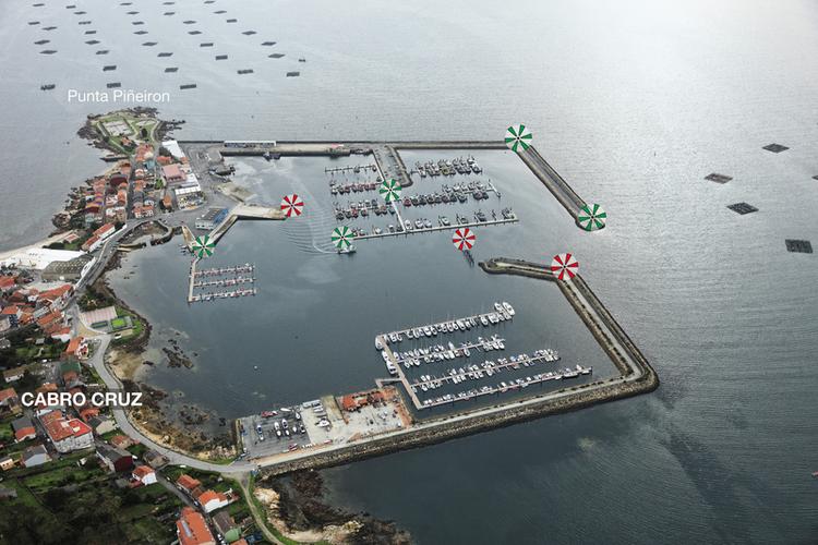 Feux d'entrée : Digue abri intérieur, extr. Fl(2)G.7s3M (42°37' N - 008°53',5 W) ; Bajo Mosquardillo Fl.R.5s5M (42°35',6 N - 08°52',4 W).
