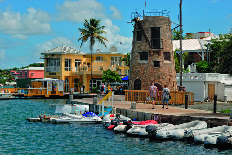 Mouillage : Plusieurs mouillages possibles : face aux pontons de Sainte-Croix Marine, au SO de Protestant Cay et face à Altona Lagoon.