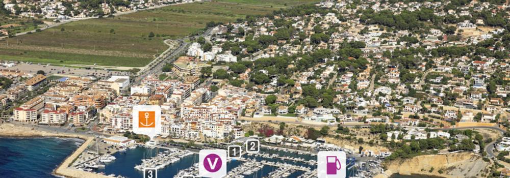Situé dans la partie N de la baie de Moraira délimitée par le cap Blanco au S et par la pointe de Moraira à l'E. Le port est protégé au S par un brise-lames et à l'E par le promontoire de la pointe de Moraira.