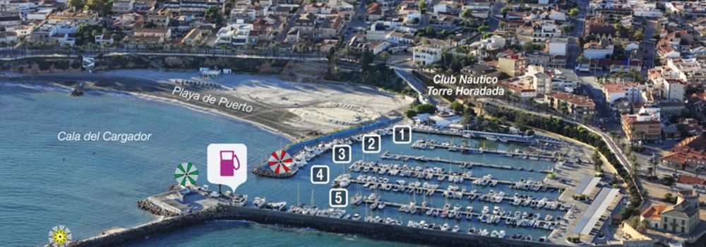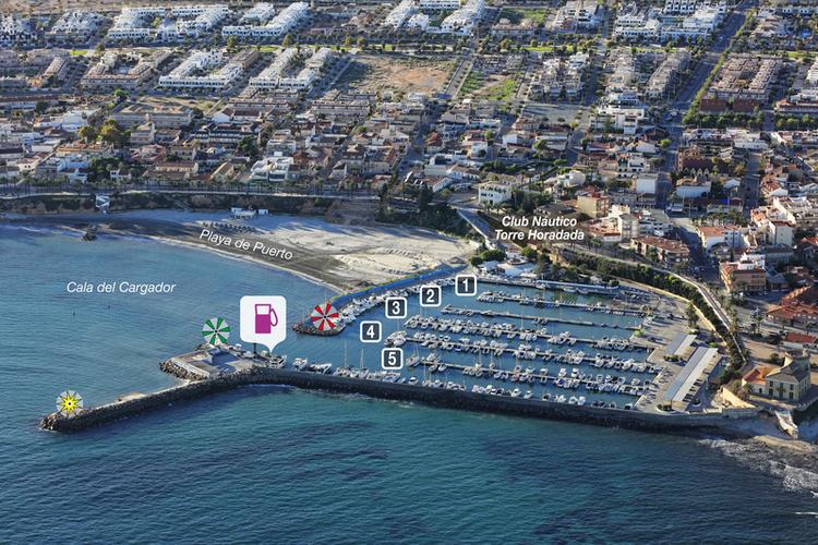 Puerto Torre Horadada est un port artificiel de plaisance, profond de moins de 2 m, aménagé sur le côté Sud de la pointe. Il est abrité par deux digues. L’entrée est signalée par deux feux.