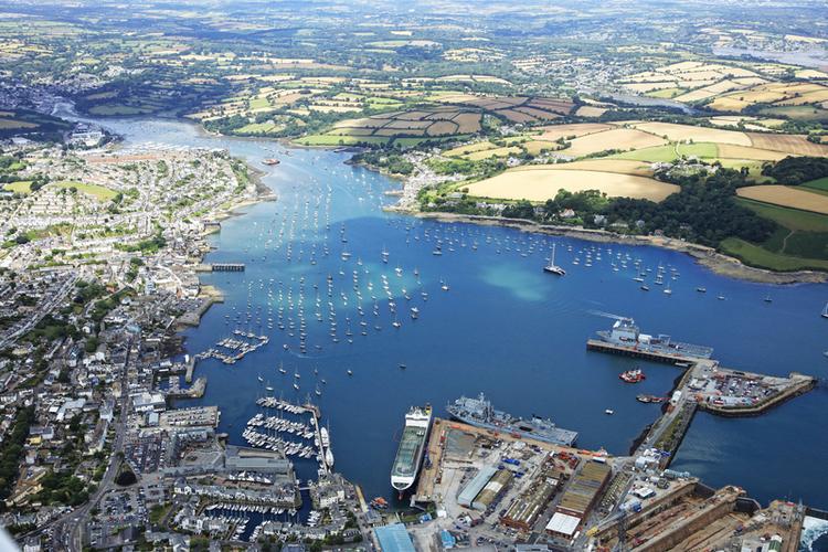 Falmouth est situé entre Pendennis Point et le phare de St Anthony qui se trouve au nord-ouest de l'entrée. L'accès au port est divisé en 2 chenaux (Est et Ouest), séparés par Black Rock. Le chenal le plus large, celui qui se situe à l'est, est praticable par tout temps.