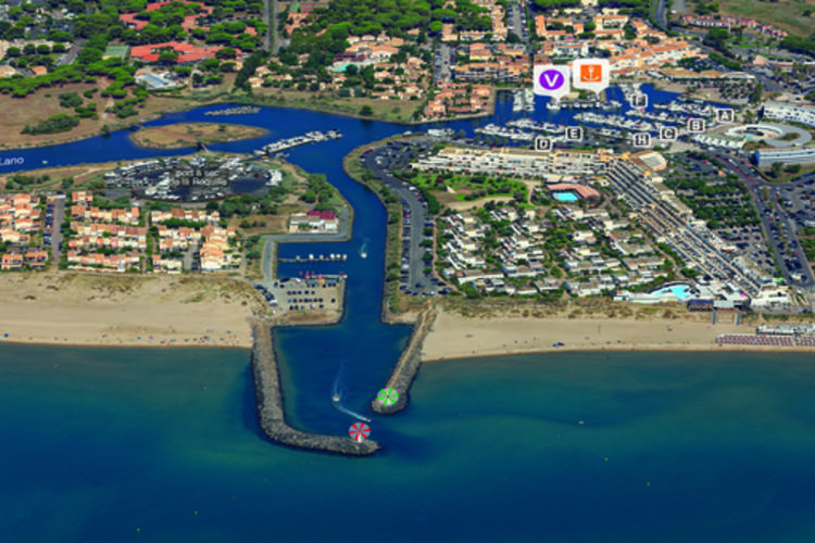 Port de plaisance situé en bordure du centre naturiste, à 1 M au NNE du Cap d'Agde. Accès par un chenal de 20 m de long. Passe dangereuse par vent d'ESE.