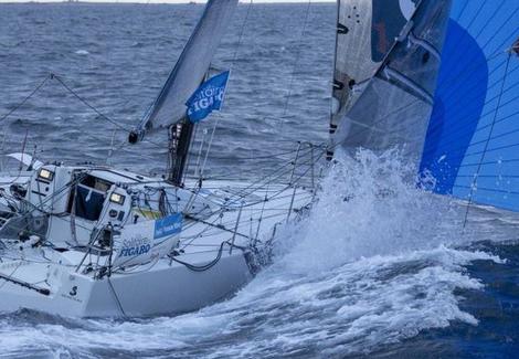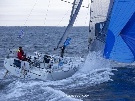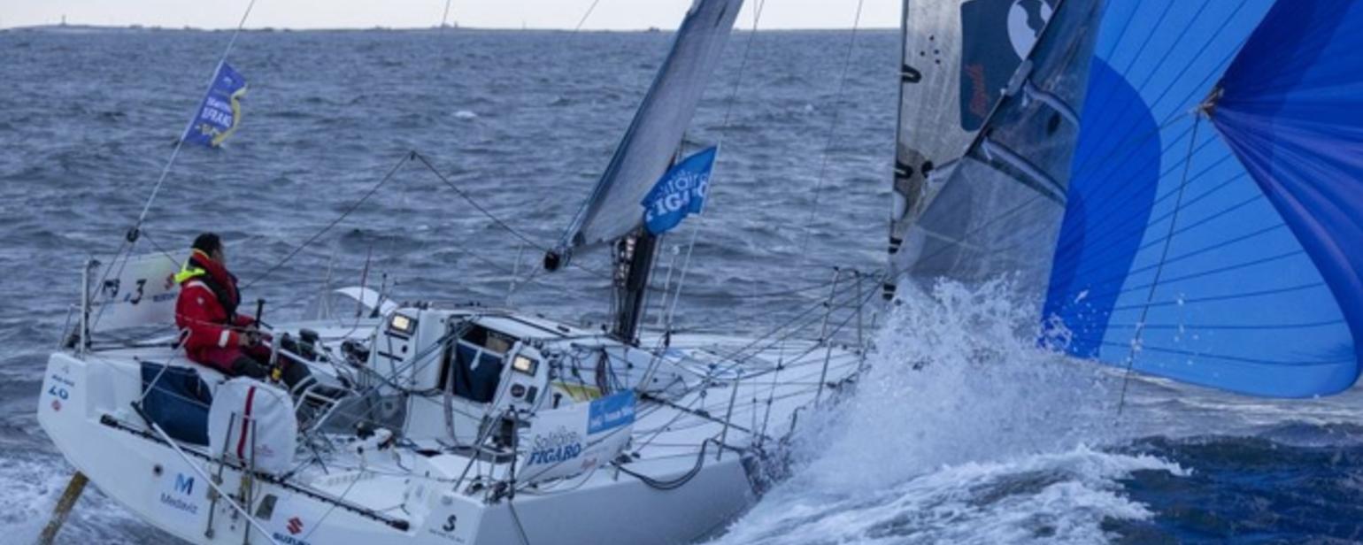 Après une première journée de course, Tom Laperche (Région Bretagne - CMB Performance), qui progresse à la vitesse de 7,1 nœuds, menait le peloton devant Tom Dolan (Smurfit Kappa - Kingspan) à 0,4 mille. Alan Roberts (Seacat Services), à 1,1 mille complète le trio de tête.
